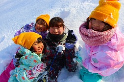 | 12月に入り、降り積もった雪に大興奮の子ども達♪園庭を駆け回り |