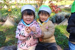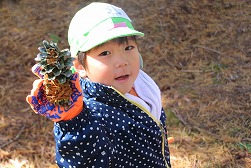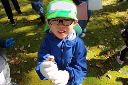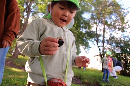 森の中は、かわいい発見でいっぱい♪「あ!あれは何?」「どんぐりだ~!!」 |