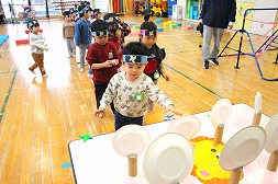 | フープで遊んだり、先生の背中に乗って亀さんごっこしたり、たくさん楽しんできました! |