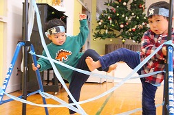 | 手裏剣投げや飛び石の術!忍者になりきって思いきり体を動かしました! |