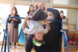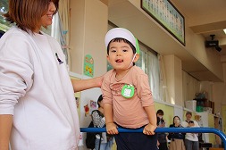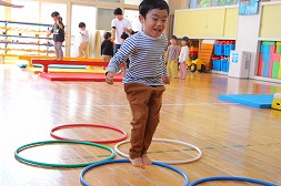 フープで遊んだり、先生の背中に乗って亀さんごっこしたり、たくさん楽しんできました! |