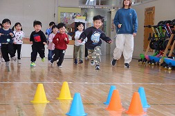 | 並ぶ順番を覚えた年少さん♪準備運動も楽しんで取り組むことが出来ました! |