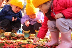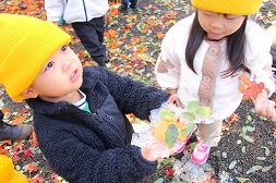| 森の中は、かわいい発見でいっぱい♪「あ!あれは何?」「どんぐりだ~!!」 |