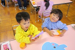 | 座り方、お話の聞き方がとっても上手になってきた年少さんです♪ |