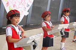 マーチングも、プレイバルーンもかっこいい姿をみせたい!と張り切っている年長さんです☆ |