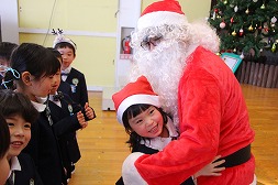 | サンタさんにギューっとしてもらって嬉しそうなみんなです♪ |