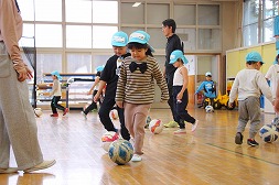 | 月に一度のサッカー教室!ドリブルもボールと足の距離が丁度良くなってきたね☆ |