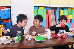 | ご飯をを食べたり、ゲームをしたりして仲良くなったよ♪ |
